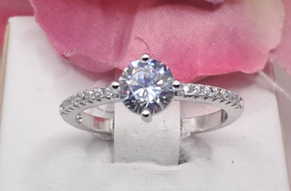 Anel Solitário em Prata com Zircónias