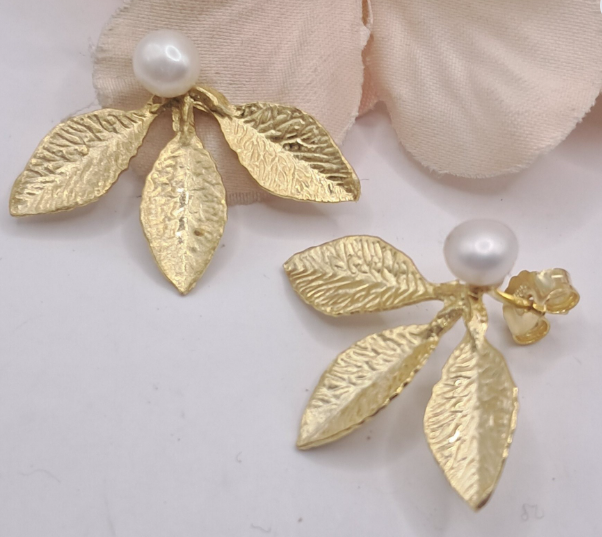 Brincos em Prata Dourada com Perolas