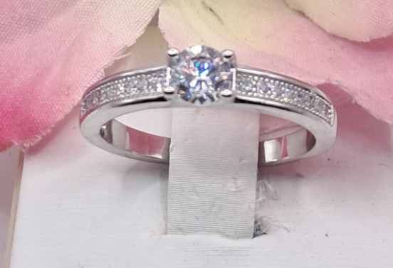 Anel Solitário em Prata com Zircónias
