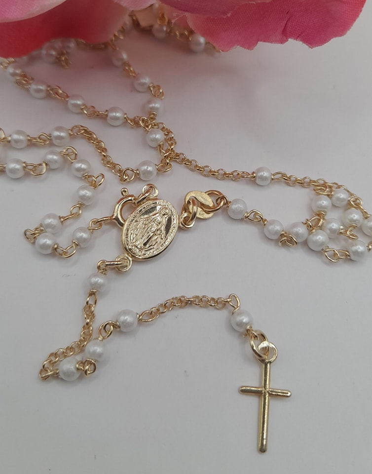 Imagem de Fio Terço em Prata Dourada com Pérolas