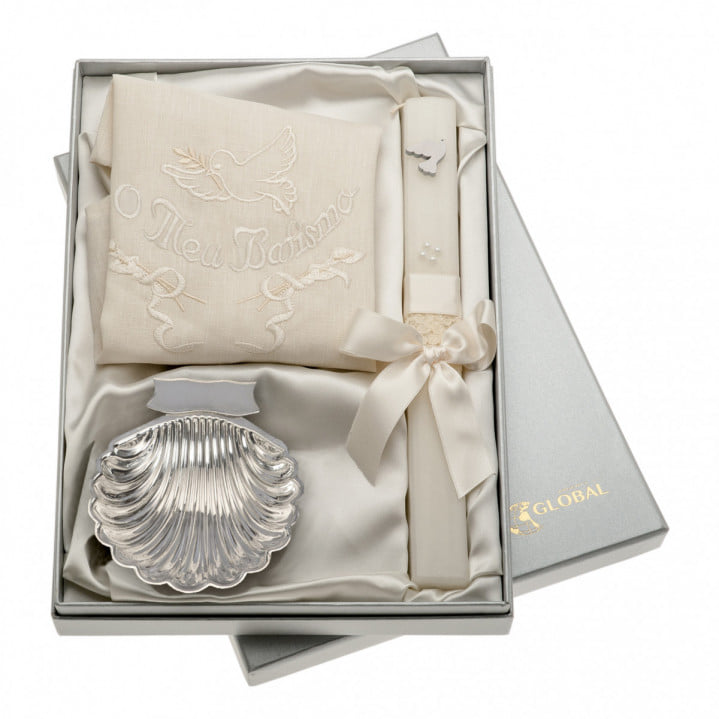 Concha em Prata, Vela e Toalha Bordada